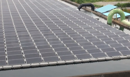 首先是在中鋼儲水池上設水面式太陽能系統,以往水面式都在水庫、潭或埤、滯洪池居多,這是國內少見在工業區內大型儲水槽設水面式太陽能光電系統,這座大型儲水池收集鳳山溪都汙再生水,從去年8月起每天回收2.3萬噸的再生水,到今年8月已收回837萬噸再生水運用。